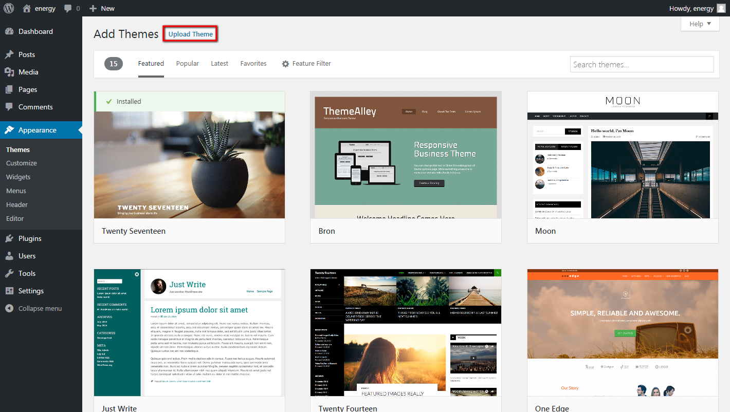 1. Go to your WordPress Dashboard is finished, click "Appearance" > "Themes" > "Add New":